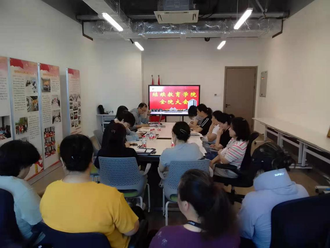 副院长吴刚代表党政班子全面总结了学院上半年在党建、行政、学生、工会等方面取得的进展。针对下半年工作,学院将重点推进校企合作深化、产教融合发展、制度规范管理等,积极推动继续教育在人工智能时代的转型升级,打造“三协同2.0版”育人生态,助力学校战略目标落地。此外,学院将充分利用暑期窗口期做好“十四五”规划总结和“十五五”规划调研等相关工作。副院长张玮就夜大学历继续教育暑期工作安排和下半年重点工作进行了补充说明。