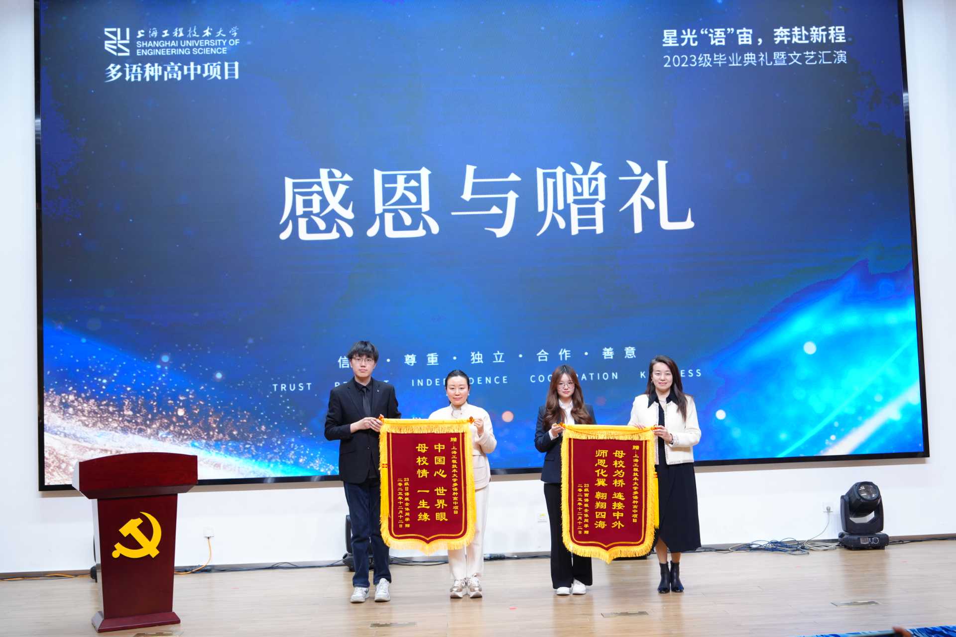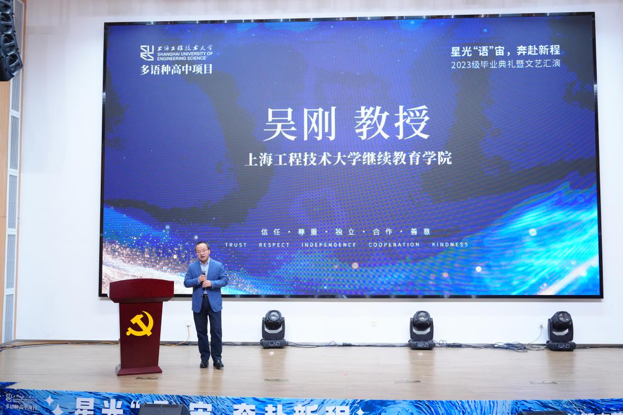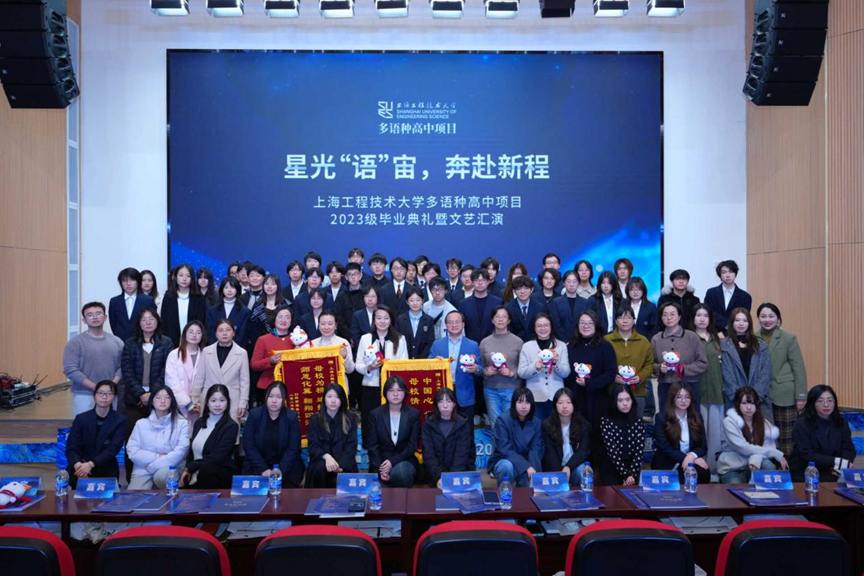 2025年12月18日下午,必威betway西汉姆多语种高中项目2023级毕业典礼暨文艺汇演在西汉姆联长宁校区产教融合大楼报告厅隆重举行。本次活动以“星光‘语’宙,奔赴新程”为主题。继教产业联合党总支书记袁蓉教授、必威betway西汉姆副院长(主持工作)吴刚教授及相关职能部门负责人、多语种高中项目全体师生与毕业生家长代表齐聚一堂,共同见证2023级学子完成高中学业,开启海外深造新征程。