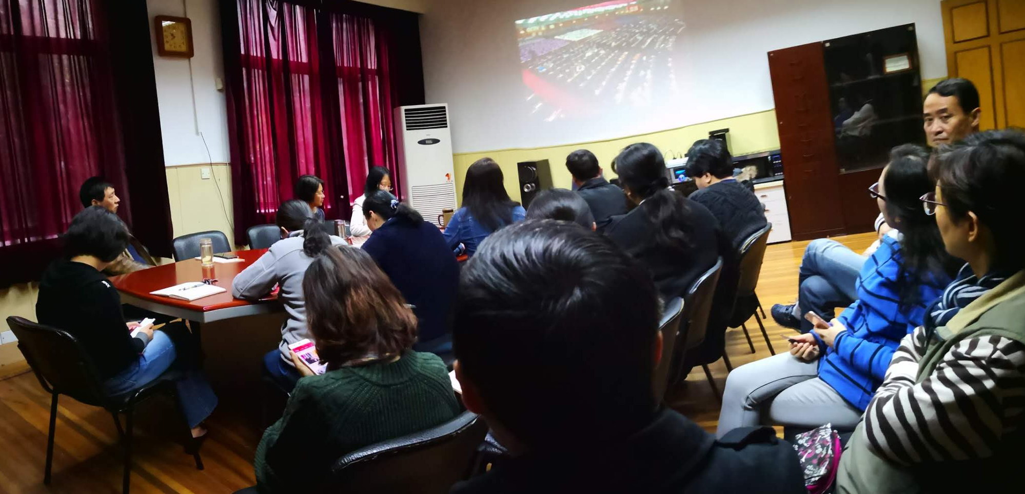 4月30日上午10点30分,纪念五四运动100周年大会在北京人民大会堂隆重举行。必威betway西汉姆组织教职工在长宁校区教学楼222会议室,收听收看了纪念五四运动100周年大会直播,认真聆听了习近平总书记在大会上发表的重要讲话。
